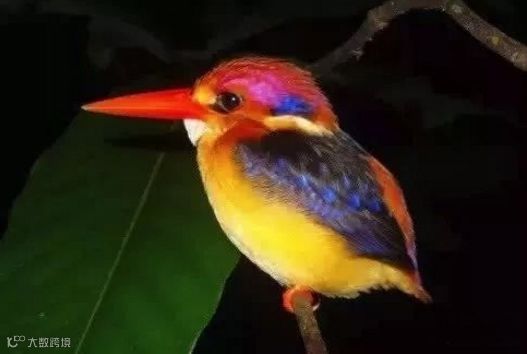 黑背翠鸟,羽毛色彩鲜艳,生活在亚洲东南部和印度,靠近阴凉森林的河流。这些翠鸟在河边吃昆虫、小鱼和蜗牛以及小蜥蜴,青蛙和螃蟹。它们在河岸建造长达一米的隧道式巢穴。