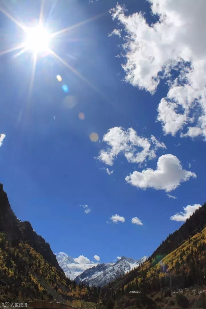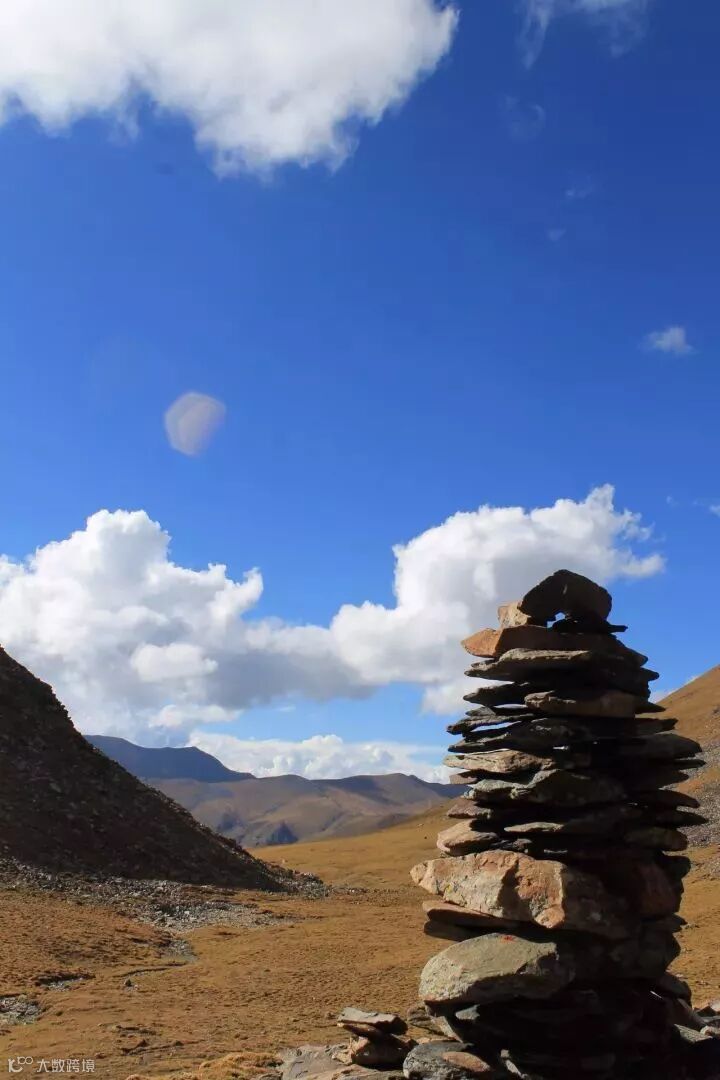 犹如一朵朵巨大的棉团悬挂在天上,时而聚集,时而分散,时而融进雪山,时而落在草原;又像洁白的哈达,带着吉祥,散布在离天最近的地方。久违了这如画的白云,以至于眼看着云朵,心中还在猜测这是真还是假,常常为此感到尴尬,同时也为此感到幸运,因为在这里看到了真正的祥云。