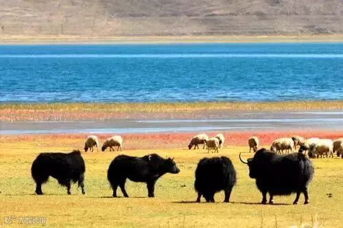 在西藏的原野上见到最多的是牦牛,身披长毛,体格强健,成群结队,十分壮观。特别是走近时,它们表现的烦躁和不友善,圆目相视,打着响鼻,扎出一幅神圣不可侵犯的架势。西藏牦牛有着持久的耐力,有着对艰苦条件下的适应能力,能在高海拔的自然环境下,抵御严寒和风雪,是藏民的亲密伙伴。