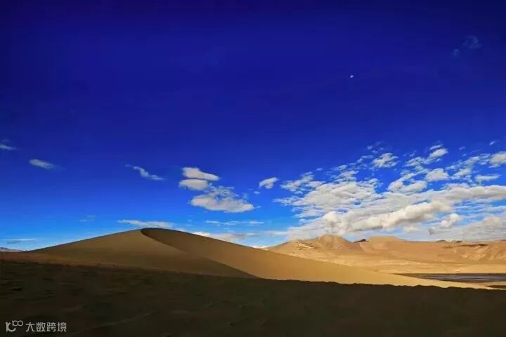 那是浑圆无迹的整体,宛如亘古以来未曾搅动的池水,宛若千载岁月未曾触过的岩冰。那就是西藏的天,是千年不见人回的孤寂,是万里纵横风雪声的回响。犹如一块巨大的蓝布,紧紧地包裹着这块神秘的土地。一切在蓝天的映衬下显得是那样的清晰明快,即便是远方的物体亦可一览无余。
