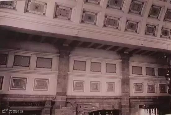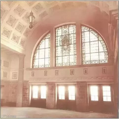 从正面大门进去为候车大厅(后来改作售票厅),平面方形,拱顶高约13米,上覆双坡瓦屋面。南北两墙上嵌以宽大的拱形高窗,镶彩色玻璃。在候车大厅之东突出一个低矮的绿色球型穹顶,是当年的售票室所在(见上图)。