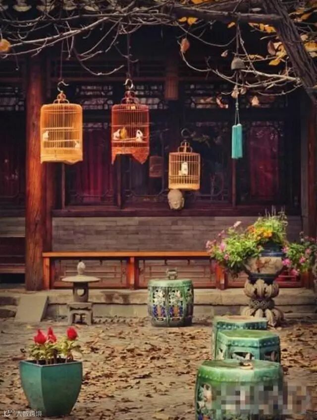 四合院的正中央是宽敞的庭院,种植石榴、海棠等,陈设盆栽、饲鸟养鱼,宛然将自然之气与居家之乐拉近了人心,成为人们钟情的理想天地。