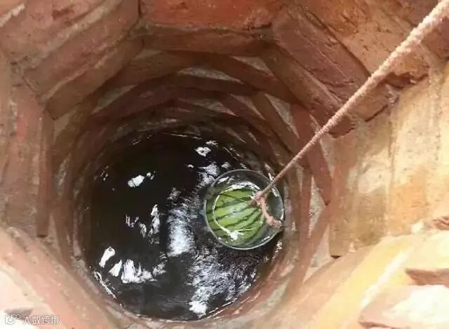 或者就直接把西瓜放进水井里冰镇,这就是“天然的冰箱”~午觉睡醒之后来上一块,爽!
