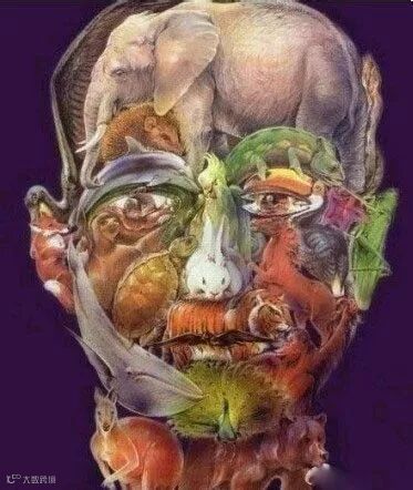 这幅图,虽然看上去有点可怕,不过回过神来想想,还真是有创意。你能看到几种动物?据说有人看到30种哦。