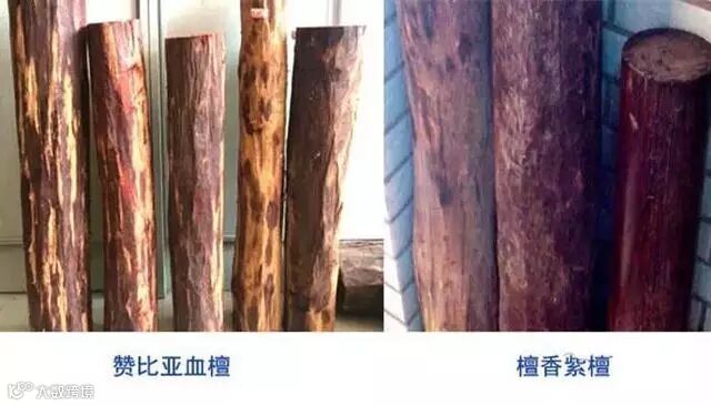 1、原木特征,紫檀和血檀基本相同: