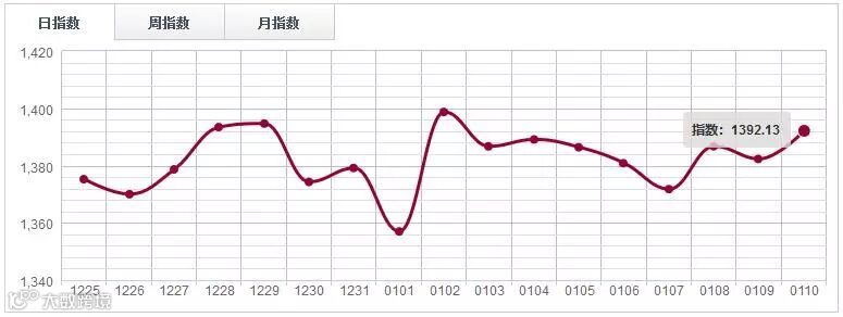 1月10日,中国木材指数(CTI)报收1226.74点,涨0.72%。其中广东鱼珠木材指数(YTI)收于1155.56点,涨1.42%;上海福人木材指数(FTI)报收1246.79点,涨1.09%;四川大西南木材指数(DTI)报收1329.00点,跌1.44%。江西南康木材指数(JTI)报收1745.88点,微跌0.05点。