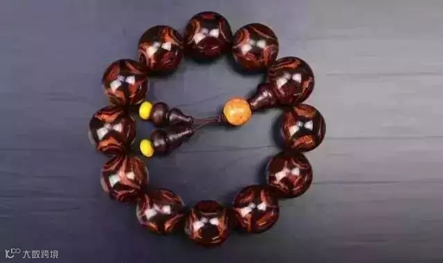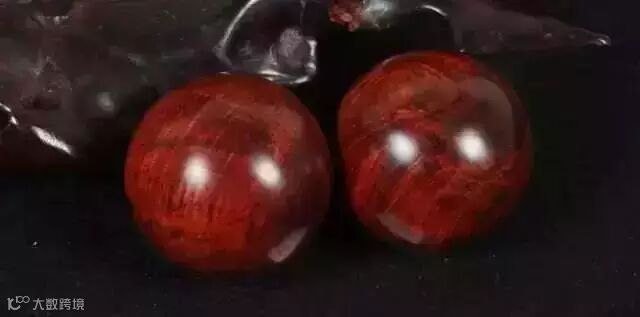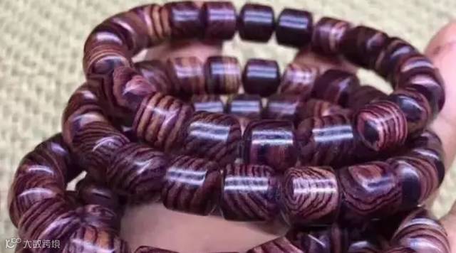 (5)纹路:紫檀柳珠子多是顺纹,纹路发红且感觉很淡,黄花梨的纹路很少有发红的,个别也是紫色变浅过渡成红的。