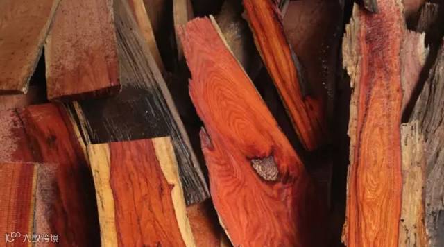 红酸枝木:新切面有酸枝木特有的酸香气,故称之为酸枝。隶豆科,黄檀属。主要分布于东南亚、中南美洲的热带地区。