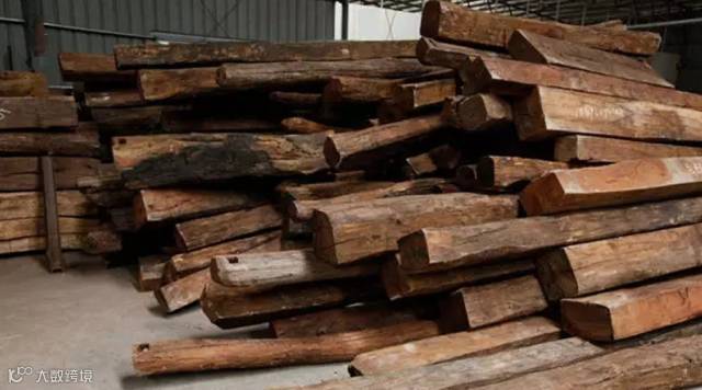 油性不足,表面看起来很粗糙,棕眼明显,木纹通直略交错,纹理宽泛,颜色呈黑色或者棕色,整条感觉颜色发乌,如同做旧的感觉。