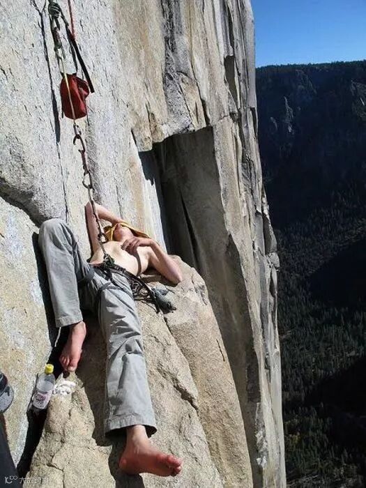 ▼爬累了休息一下.....这辈子还真没在悬崖上睡过
