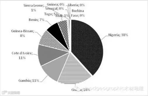 以下是国外关于刺猬紫檀的一份权威的学术资料,其中根据中国海关2014年9月至2015年8月的数据统计了中国刺猬紫檀的进口来源: