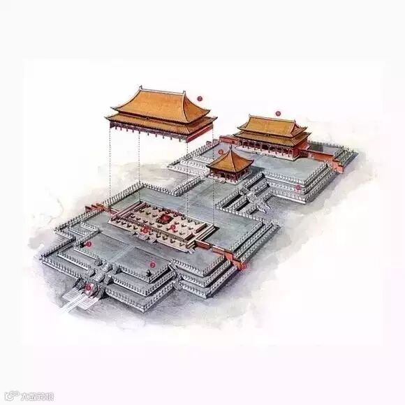 中国古代建筑习惯于采用木结构,最基本的形式是首先在地面上竖立木桩,在垂直的木柱子上架设水平的梁架,再在若干层梁枋上安置檩木与椽木,这样就完成了整幢房屋的木构架。