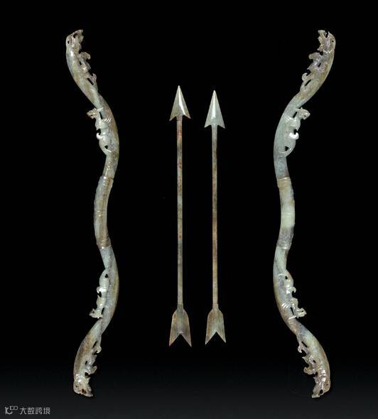 汉代 青白玉兽面纹弓箭