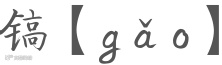 镐,亦为古兵杖之一,形式奇特,长一丈三尺,柄端安一大拳,拳握一笔,纯以铁制,其重量不亚于斧銊,旧式仪仗中时见之。
