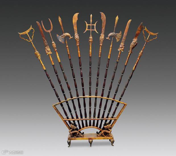 其实,所谓“十八般”,并非仅仅局限于十八种兵器,而是古代多种武艺的概说。实际上,冷兵器时代产生了许多武器,其数目远远超过了“十八般”。晚清和民国时期,“十八般兵器”成为各个武馆的必须陈设,而成为中国武术和武馆的象征之一。