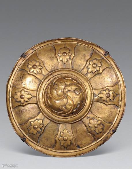 清 铜鎏金盾