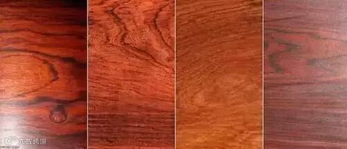 四种红酸枝木横截面对比图(从左至右分别是交趾、巴里、奥氏、微凹)