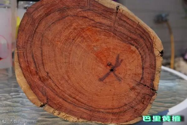 点评:巴里黄檀亦应有多个不同亚种,各亚种之间材质有一定差别;花枝木产量大,底色较红枝浅得多,一般红黄色至酱红色;普遍有黒筋,但黒筋较细,木纹呆板不灵动,绝无老红木那种粗大黒筋的;材料硬重,结构紧密,但不如交趾黄檀材质细腻,管孔较老红木粗大,普遍沉于水;新开料有轻微的酸香气,但刺鼻而不纯正,久则无任何气味;底色变化不一定越来越深,颜色走向难以把握,木材表面光亮度不如老红木;花枝木也以老挝料为最好,越南料稍次之,老挝料木材特征酷似红枝,被越南人大量采购回去做成家具,并冒充老红木家具出售,广西市场上购自越南的红木家具半成品,普遍为花枝木材质。