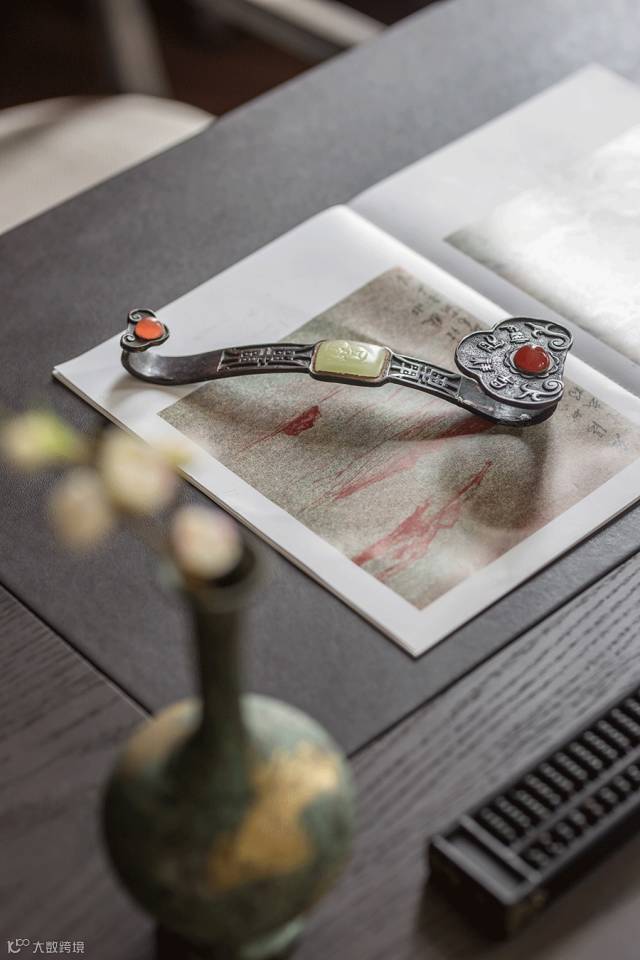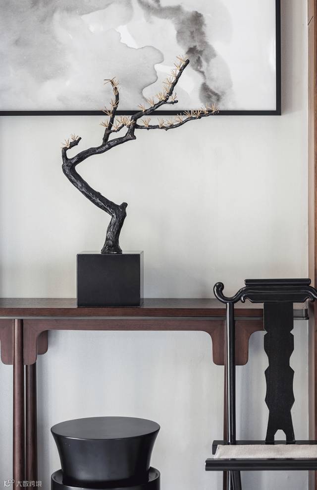 空间对称的结构、材质的运用及软装陈列方式都体现出中式的韵味与仪式感。在东方美学被不断提起的今天,呈现出一种开放的姿态,并保持自我的风格。