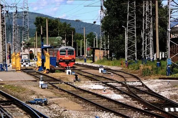 换轮完成后列车返回车站,挂上蒙古机车准备出国。