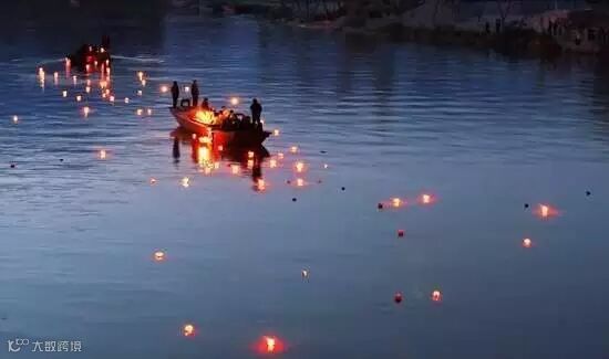 放河灯一般是在底座上放灯盏或蜡烛,中元夜放在江河湖海之中,任其漂泛。放河灯是为了普渡水中的落水鬼和其他孤魂野鬼。肖红《呼兰河传》中的一段文字,是这种习俗的最好注脚:“七月十五是个鬼节;死了的冤魂怨鬼,不得托生,缠绵在地狱里非常苦,想托生,又找不着路。这一天若是有个死鬼托着一盏河灯,就得托生。”