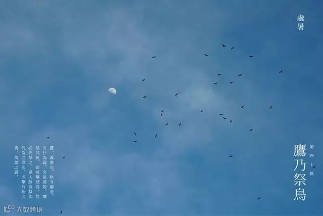 我国将处暑分为三候:“一候鹰乃祭鸟;二候天地始肃;三候禾乃登。”