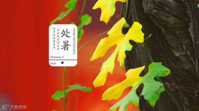 处暑是反映气温变化的一个节气。“处”含有躲藏、终止意思,“处暑”表示炎热暑天结束了。《月令七十二候集解》说:“处,去也,暑气至此而止矣。”“处”是终止的意思,表示炎热即将过去,暑气将于这一天结束,我国大部分地区气温逐渐下降。处暑既不同于小暑、大暑、也不同于小寒、大寒节气,它是代表气温由炎热向寒冷过渡的节气。