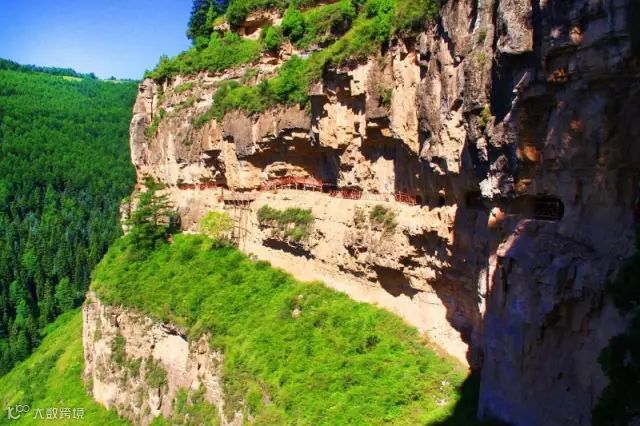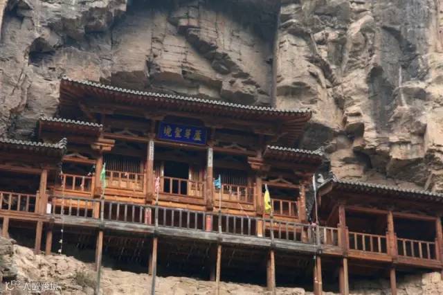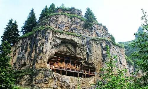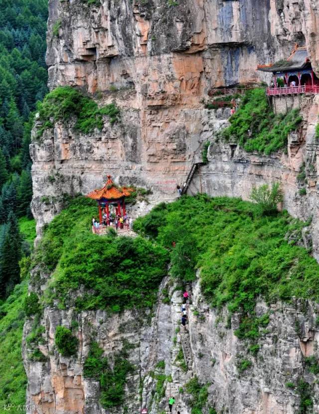 在宁武,还有一个被誉为“小悬空寺”的地方,它位于管涔山深处,凌空悬挂于近百米的山间悬壁之上,距地面100多米主殿为木质结构,上下两层。