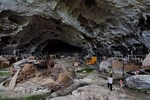 要到达中洞苗寨就必须爬山穿过下洞,这是一个布满化石的洞厅,经过两个多小时跋涉,穿过葱郁竹林,一个巨大洞穹便呈现出来,这便是中洞苗寨,在这个舞台上苗族人演绎了真实古朴的“山顶洞人”生活。