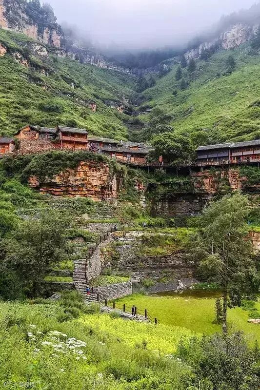 悬空村的周围景色在一年四季都那么诱人,生态环境原始幽静,山清水秀,因此这里也被当地人誉为“长寿村”。