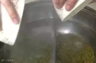 如果刚买回绿豆就想喝绿豆汤,来不及冻绿豆,我们可以将洗干净的绿豆直接放入锅中炒一下,水分炒干后直接在锅里加入冷水。热绿豆遇到凉的水,加快了绿豆表皮的破裂。等水开之后,再煮2分钟绿豆也被煮开花了!
