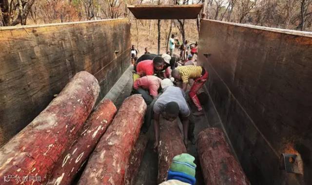 一根血檀木的重量可以达到400斤以上,有的甚至重达1000多斤,而刚果(金)这个动荡贫穷的国家缺少机械设备,所以木头装车只能依靠人工:装运一车木材,一般需要20个人工作一个上午。