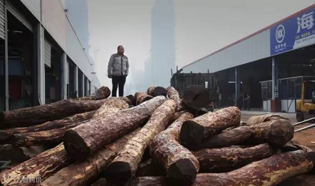 金港木业城内,正在采购血檀的木材中间商王老板。就在成交前1小时,王老板脚下的这些血檀,突然从2.3万元人民币/吨上涨为2.8万元人民币/吨。