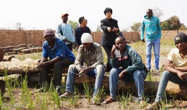 堆放场里的中国商人现场砍掉一根血檀的表皮,向顾客展示木材的品质。由于赞比亚政府对血檀砍伐和贸易的严格管控,中国木材商人们转而在刚果(金)继续从事血檀的砍伐和贸易。