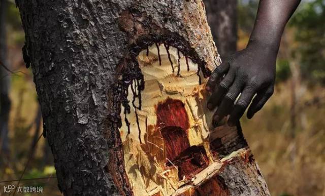 为了获得尽可能高品质的木材,中国商人教给当地伐木工一个简单的“质检”方法:把树砍开一个口子,取一小片芯材扔进半瓶水中。如果立即下沉且没有气泡就是好木材,反之就不是受商人青睐的“好树”。这片原始森林中,可以看到很多像留下了伤痕的血檀木。