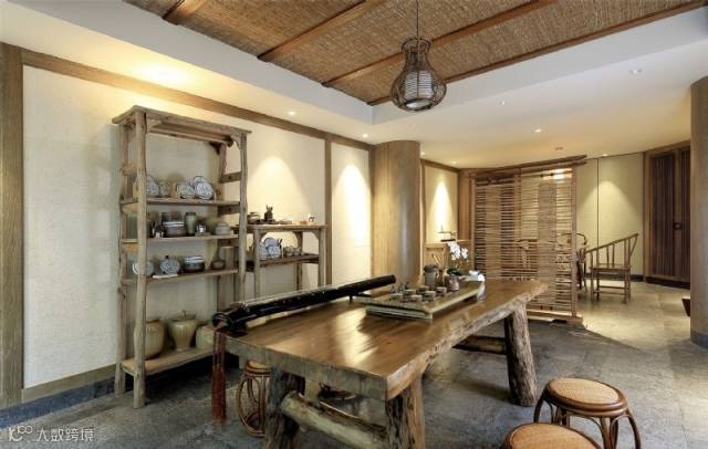 茅草屋顶、原木家具、素色面料,一切都是那么的不经意,天然去雕琢。暖暖的阳关透过夹着薄纱的实木隔断,仿佛置身在了一个清丽如水,沉定如钟的桃源幽世,一颗心也被浸润得晶莹剔透,平滑如镜,不惹半点尘埃。