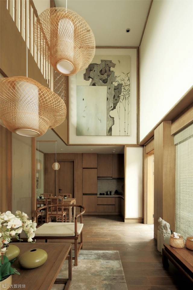 植物装饰比任何饰品更具有生机和活力,画中的树枝小鸟与干枝的植物搭配在此,或虚或实,或静或动,不但丰富了空间,还给人们带来全新的视觉感受,空灵脱俗,直达心灵的禅音。浓墨禅屋。