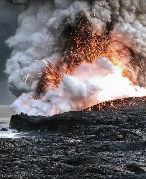 火山喷射的一瞬间,太罕见了!
