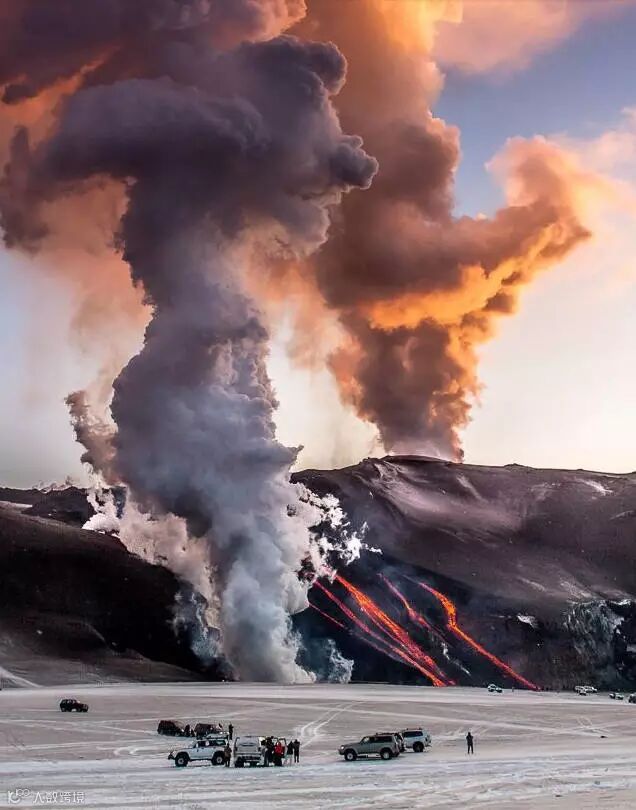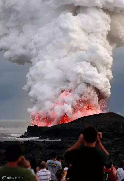 前面的人要多有勇气才能离火山这么近啊!