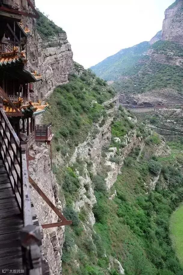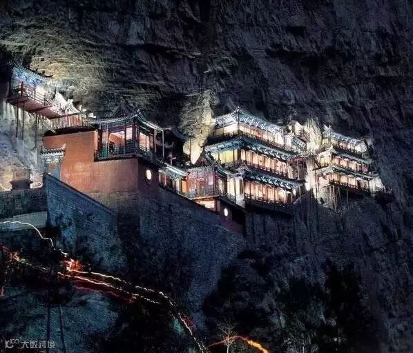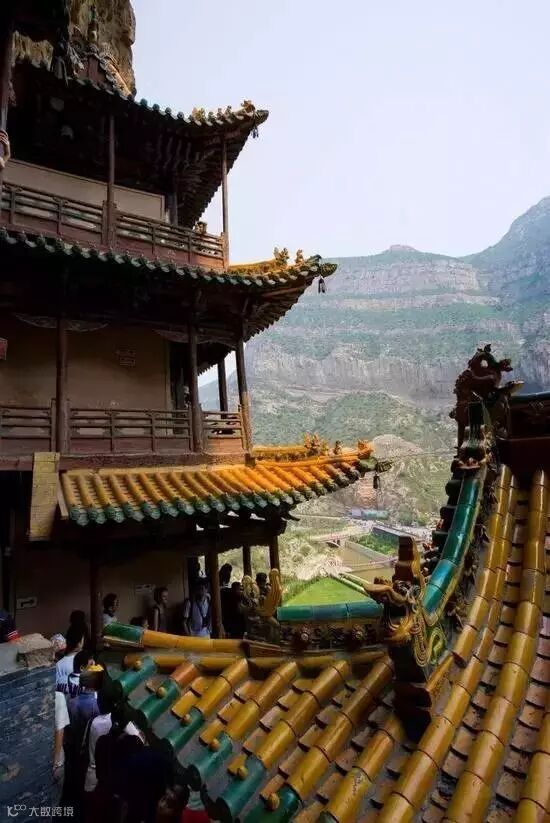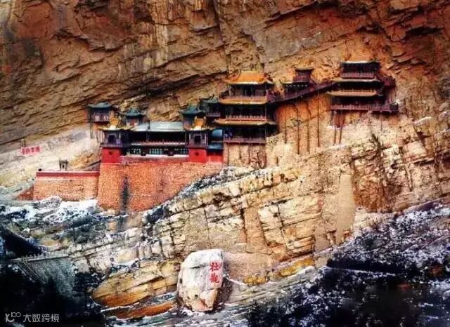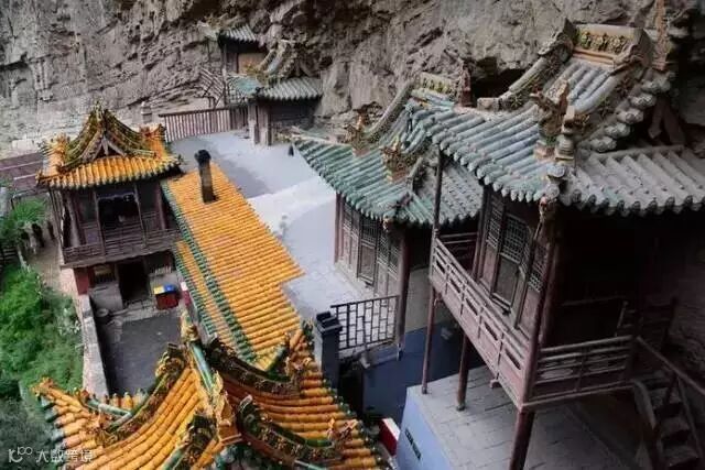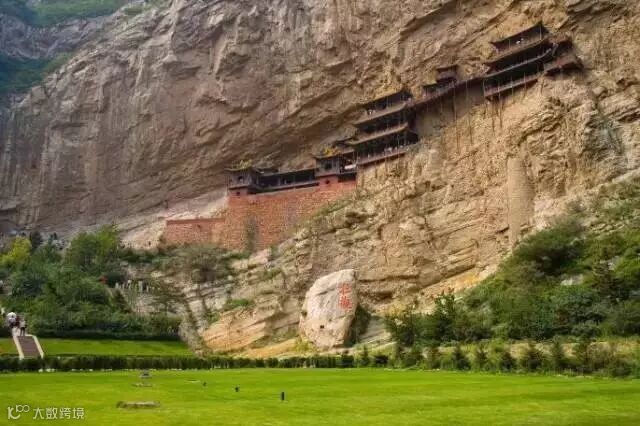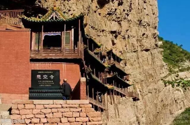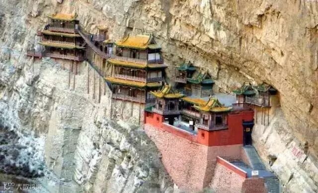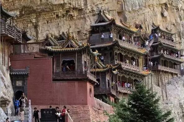 悬空寺又名玄空寺,悬挂在北岳恒山金龙峡西侧翠屏峰的半崖峭壁间,该寺距地面高约50米,其建筑特色“奇、悬、巧”,是国内现存最早、保存最完好的高空木构摩崖建筑,也是国内唯一儒释道三教合一的独特古建筑。