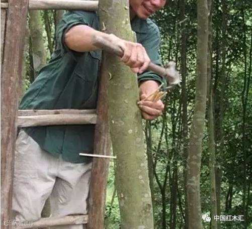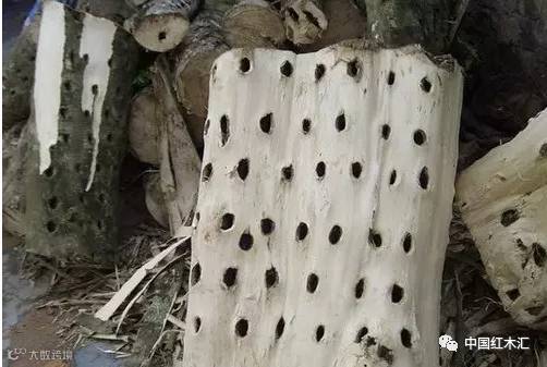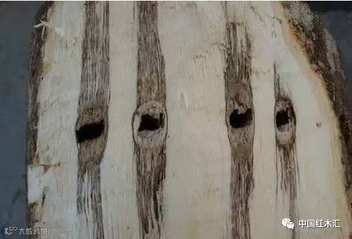 但眼下再用这样的传统方式,市场已经等不及了,利益的驱动,需要短时间内批量制造出“沉香“。于是,在香树上打洞、打钉子、火烧、涂抹真菌以及使用沉香诱导剂,成为当下最热门的人工造香方式,这样,大约两年时间就可以初步出香了。