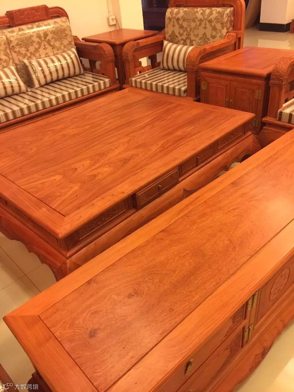 稍微有所深入了解,还会知道国内市场上有大巴花和小巴花两种,前者以大板而著名,后者则以酷似草花梨的家具而流行。