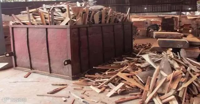 开料过程中,会剔除含白皮、虫眼、烂心的部分,这是产生整块废料最多的一个环节,各种红木的废料不同,但废弃木材的比例平均能达到20%,这些废料都是完全不能用于制作家具的。