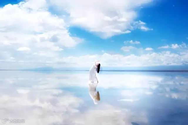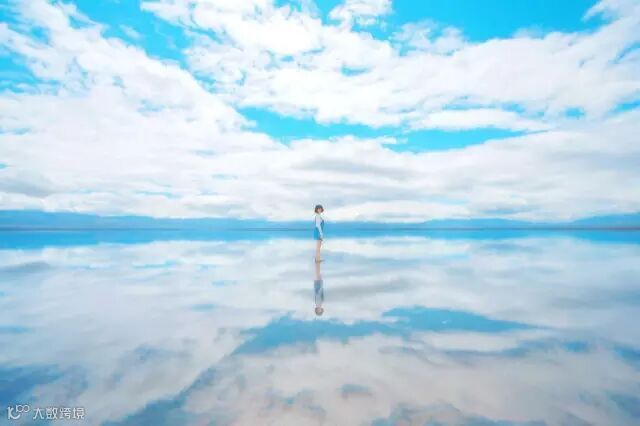 夕阳西下前是最适合拍照的时间,天光将变得越来越美。雨过天晴的傍晚,白色的湖倒影出湛蓝的天空,棉花糖似的白云,一切都是那么的美好。