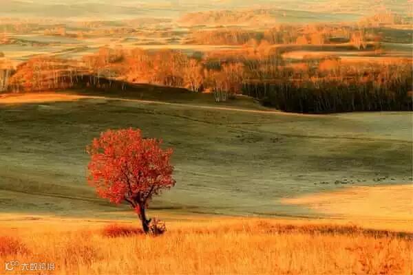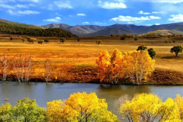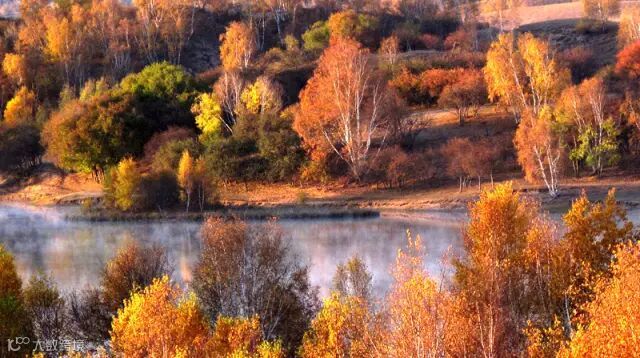当坝上的庄稼成熟了,山上的树红的一片,黄的一堆,绿的一抹,几个颜色相互交错,还有橙色的白桦林,红色的菜树,绿色的松树,层次分明,波澜壮阔。