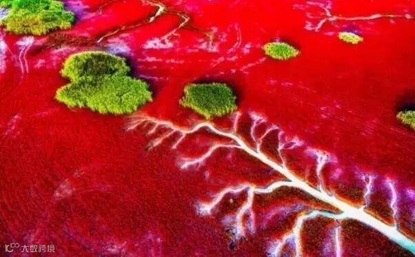 盘锦红海滩是活的,始终追赶着海浪的踪迹。滩涂以每年50米的速度向里延伸,红海滩也就踩着它的足迹,一步步地走向海里。追随红海滩,也就追随了生机与希望。