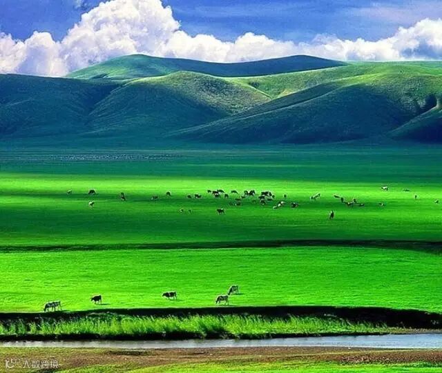 一碧万顷的草色铺开绿绸般的绒毯,去了内蒙古的呼伦贝尔,才知道,天堂原来是绿色的!