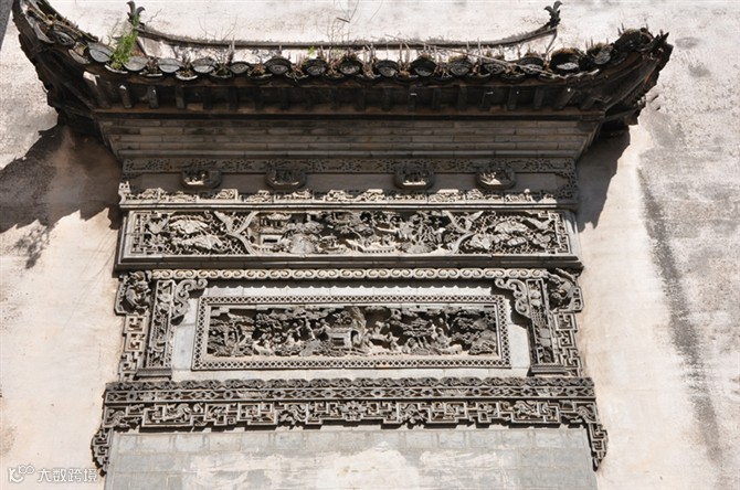 砖雕也是古建筑雕刻中很重要的一种艺术形式。是指在青砖上雕刻出人物、山水、花卉、典故等图案主要用于装饰寺塔、墓室、房屋等建筑物的构件和墙面。通常也指用青砖雕刻而成的雕塑工艺品。
