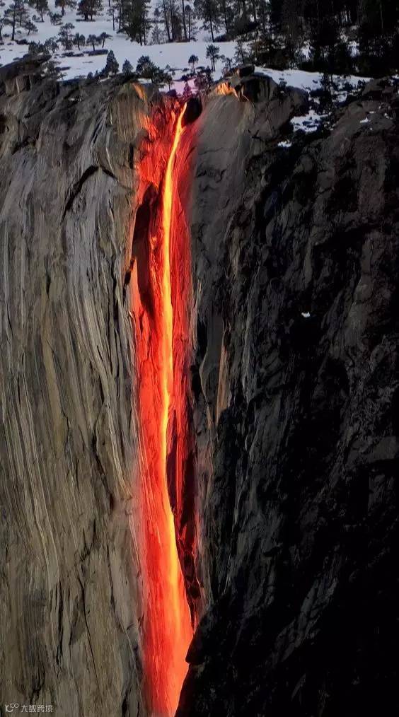神奇的马尾瀑布,美国西部优诗美地国家公园内,火一样的瀑布