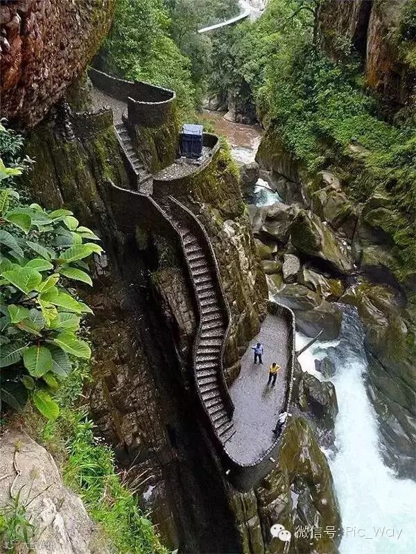 厄瓜多尔帕龙德尔暗黑瀑布,处处湿滑的台阶,你敢走吗?